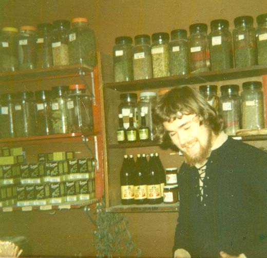 In 1974 the new "hippy shop" on Market Street, originally called "Sun, Moon and Herbs" sold handmade crafts 'sale or return.' It was run by a couple of laid-back hippies who opened up when they felt like it. I called in one day and offered to help out and the following week I got a knock on the door to ask if I could help out on Saturdays. From this, the two hippy blokes dropped out and I took over the reins of the shop and turned it into a Wholefood shop. When the shop takings were stolen, I set the shop up as a business and called her Aurora.