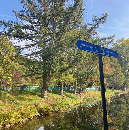 I was inspired by Sunday’s sunshine to hobble along the towpath to Mytholmroyd for an al fresco cappuccino outside the Blue Teapot. The café was packed and the veggie food looked scrumptious. Mytholmroyd’s floods wiped out many local houses and businesses. Their 4 yearlong flood defence programme was annoying but necessary.