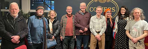 Here's a group photo of the tellers in last week's event. (Despite my attire, the room was plenty warm enough.) I wouldn't have missed the tale told by Lara the York based Celtic voiced, humorous and lyrical Lara, seen here wearing the fish hat. I'm glad to boast that I managed to rouse the audience to a hearty chorus of Grim Down South and raise a few chortles in response to Marjory Dexter, Schools Inspector both in Mytholmroyd and at Todmorden's Golden Lion, where the words from the poets and some of the musical numbers were thrillingly good.