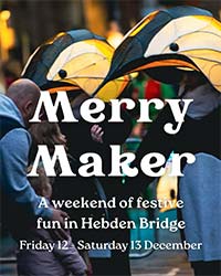 This December, Hebden Royd Business Forum and Handmade Productions the team behind Handmade Parade, Halifax Starlight Parade and contributing towards Manchester Christmas Parade - will bringĀ Merry Maker, a brand-new family-friendly festive event, to the streets of Hebden Bridge.