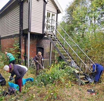 See photo above from October 2025 - Volunteers have already cleared briars, weeds and saplings from around the signal box, and the building work necessary to create the heritage centre and downstairs accommodation is expected to be undertaken this Spring.