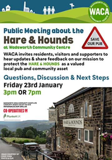 WACA invites residents, visitors and supporters to hear updates & share feedback on our mission to protect the HARE & HOUNDS as a valued local pub and community asset.