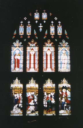| FIRST LEFT | Four more of the faithful. Under each of the windows are from left to right - The Masonic attributes - Brotherly Love, Relief, Truth, Fidelity, Charity, Peace and Harmony. |