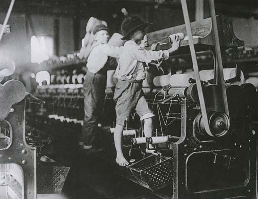 According to many historians, the start of the industrial revolution was under way by the year 1760 – by this time some mechanisation had started. For example, looms had been improved, and the 'Flying Shuttle' was invented shortly after that, leading to cloth being created more quickly. The factories depended heavily on water power, and this was provided by the use of horses, and sometimes men working a treadmill to keep the machines going.