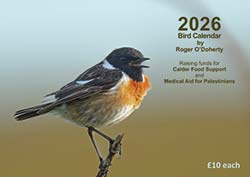 Roger O'Doherty has produced his sixth annual calendar featuring his local bird photography. The profit from the sale of these will be split evenly between Calder Food Support and Medical Aid for Palestinians.